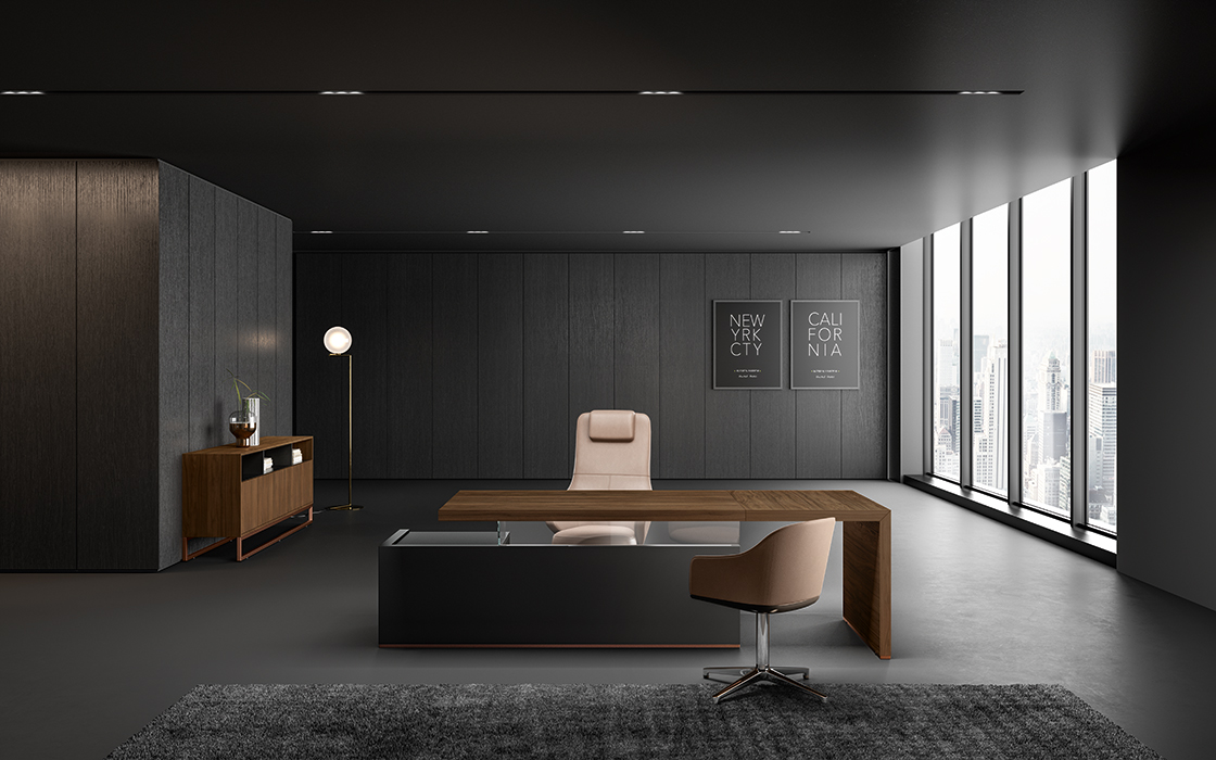 Charm and elegance define the collection: coordinated components, refined materials, and harmonious finishes create executive spaces with strong aesthetic impact, offering sophisticated functionality and a contemporary professional look.