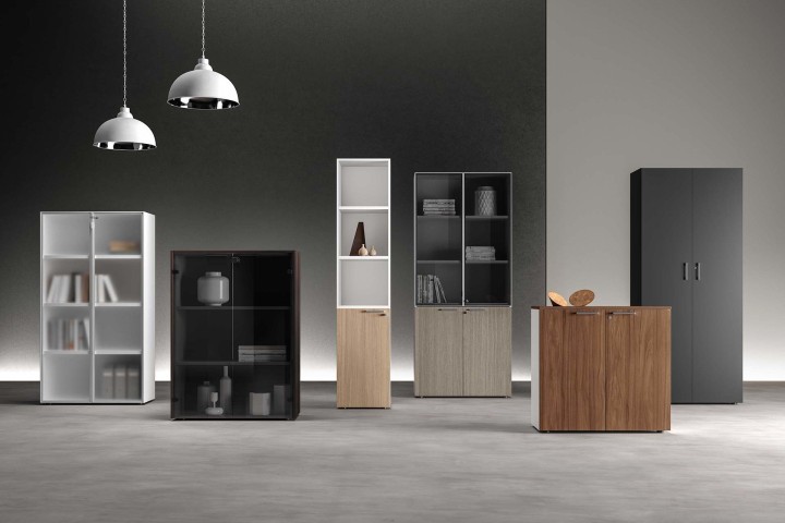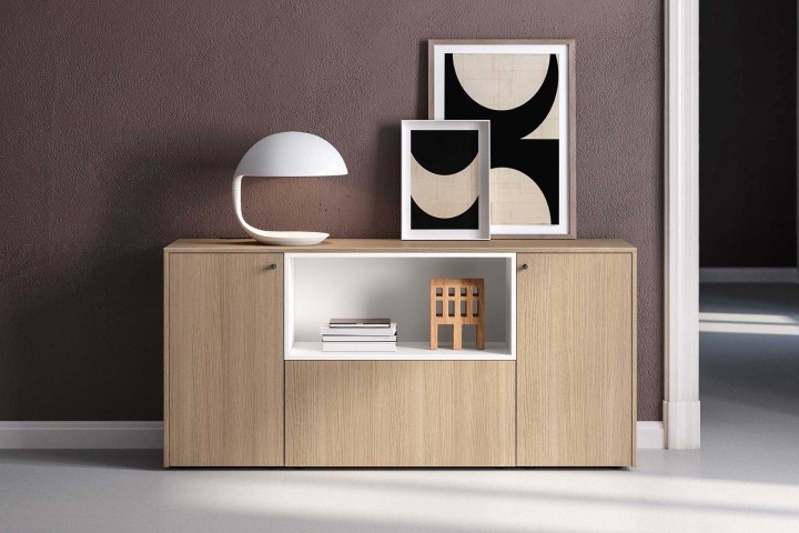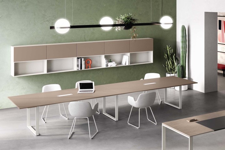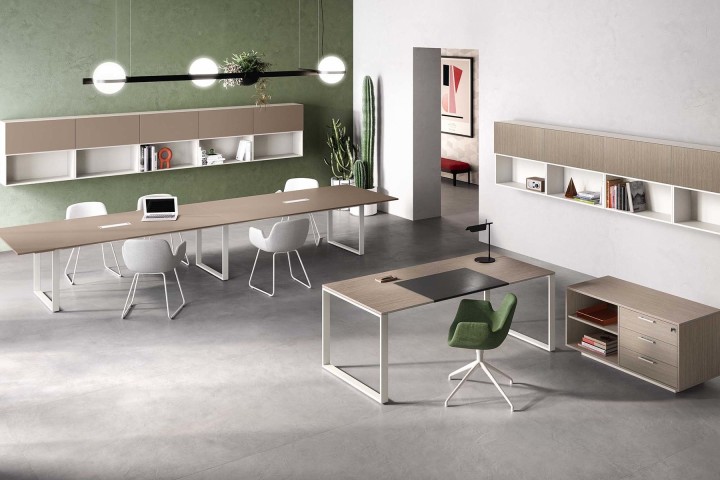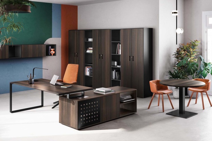 Lavorazioni eccellenti e utilizzo di melaminici esclusivi, lo rendono adatto all’ufficio sia per l’operatività singola, sia per la riunione e il contenimento.