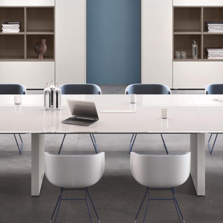 Un ufficio, infinite prospettive. HYPE ridefinisce l’ambiente direzionale con una linea completa e studiata nel dettaglio: dalle postazioni direzionali alle sale riunione, dalle aree per la reception ai mobili di contenimento. La struttura in alluminio della scrivania, frutto di un design minimal ed essenziale, viene esaltata dalle pregiate varianti per il piano di lavoro: melaminico, laccato, impiallacciato, vetro, pelle o Laminam®. Due le tipologie di strutture a disposizione: struttura a sezione triangolare in alluminio o struttura pentagonale compresa di cover personalizzabile in 2 differenti materiali e numerose finiture. Unione tra prestigio e tecnologia per adattarsi ad ogni stile architettonico: minimale e moderno, classico chic, sofisticato e raffinato.